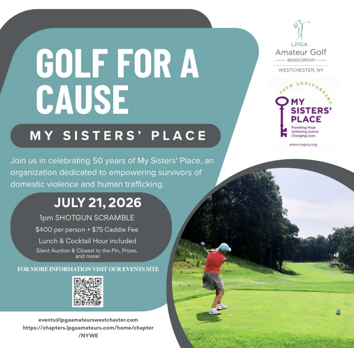 My Sisters' Place is grateful to be the beneficiary of the LPGA Amateurs Westchester Charity Event taking place on Tuesday, July 21st!